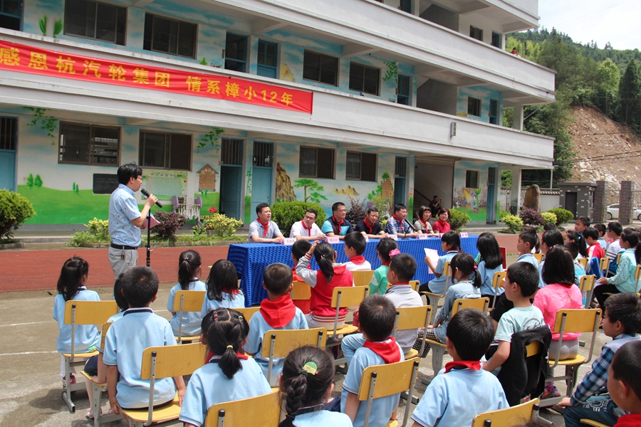 6月7日,對于淳安縣中洲鎮(zhèn)杭汽輪希望小學(xué)的同學(xué)們來說,是溫暖而又特別的一天,因為熱聯(lián)集團牽手杭汽輪希望小學(xué)愛心捐贈儀式在該校操場上舉行。杭汽輪集團黨委副書記李士杰、黨辦主任高曉萍,熱聯(lián)集團總經(jīng)理呂永洪、黨總支書記陳瑾等一行走進了杭汽輪希望小學(xué),不僅為全校120余名同學(xué)送去了體育用品和書籍,同時我司向杭汽輪希望小學(xué)捐贈20萬元人民幣,助力該校宿舍樓建設(shè)。